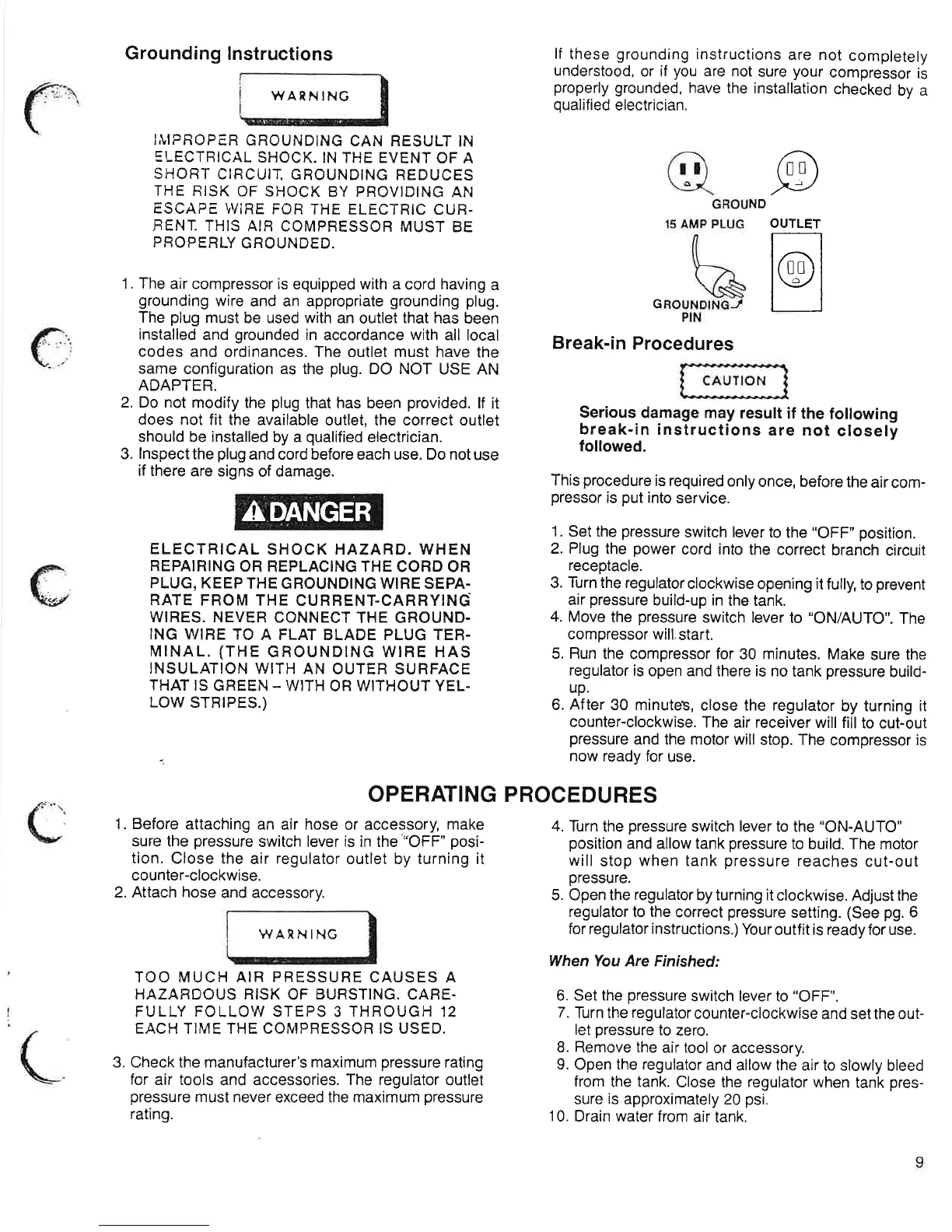 Craftsman 919.176830 - Break-in Procedures; Grounding Instructions