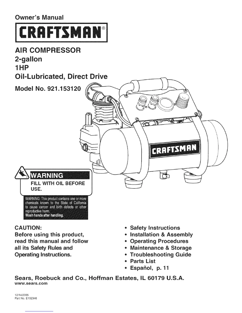 If the Craftsman air compressor motor won't start, first ensure the power cord is properly plugged in and the switch is turned on. Check your circuit box for the correct fuse size. If the fuse has tripped, reset it and attempt to restart the unit. If the fuse repeatedly trips, it may be necessary to replace the check valve or contact a service technician.