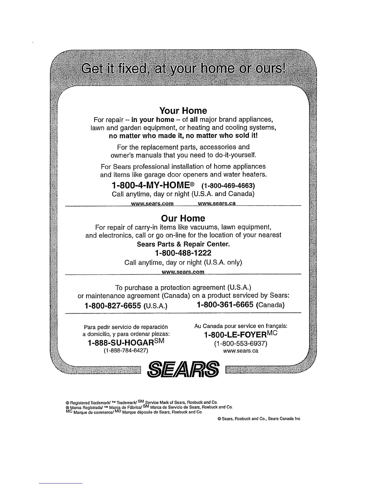 ® Registered Trademark/_M Trademark/SM Service Mark of Sears, Roebuck and Co.