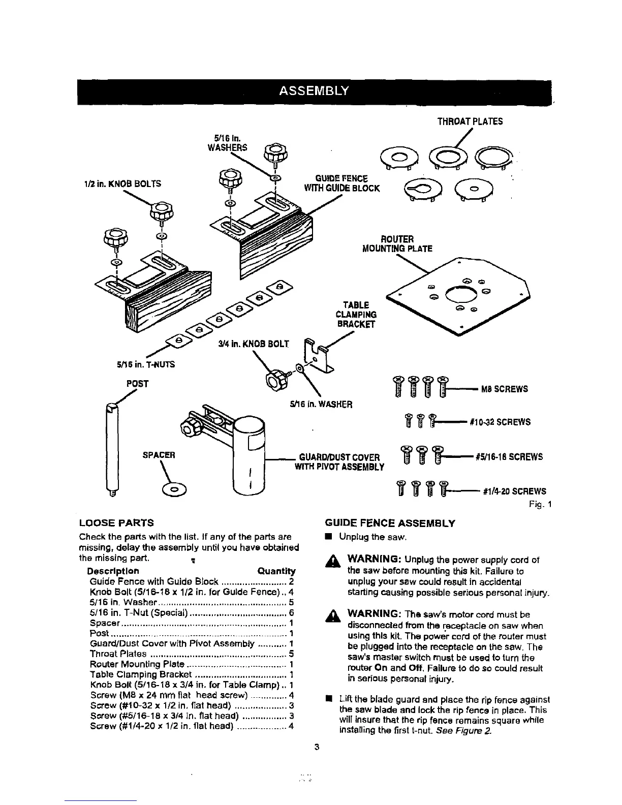 Guide Fence with Guide Block ......................... 2