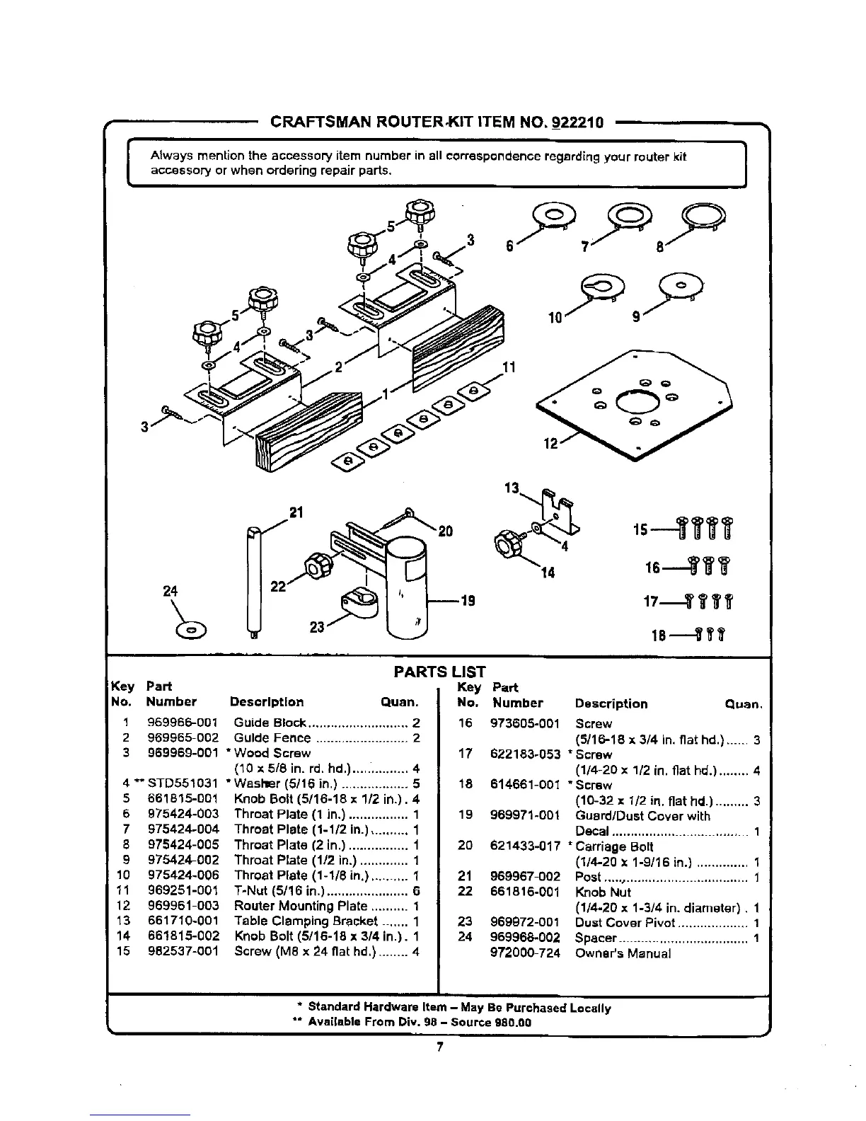 CRAFTSMAN ROUTER,KIT ITEM NO._922210