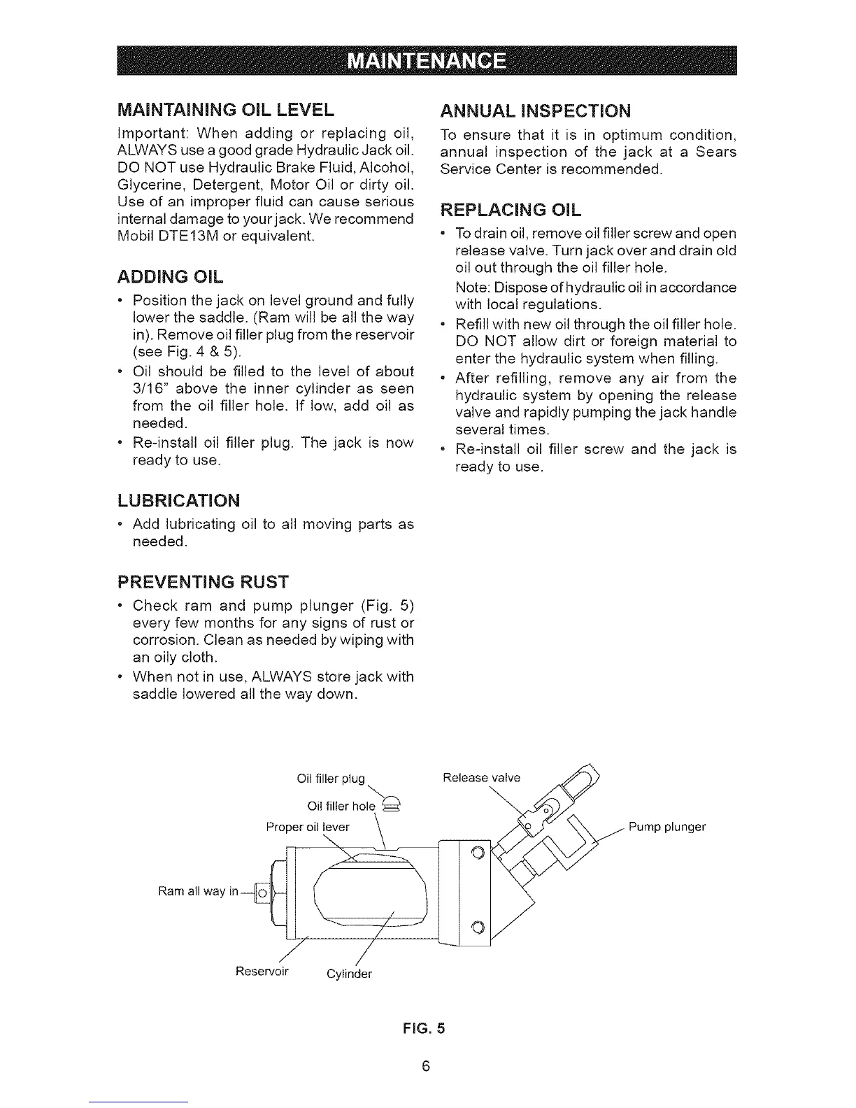 • Check ram and pump plunger (Fig. 5)