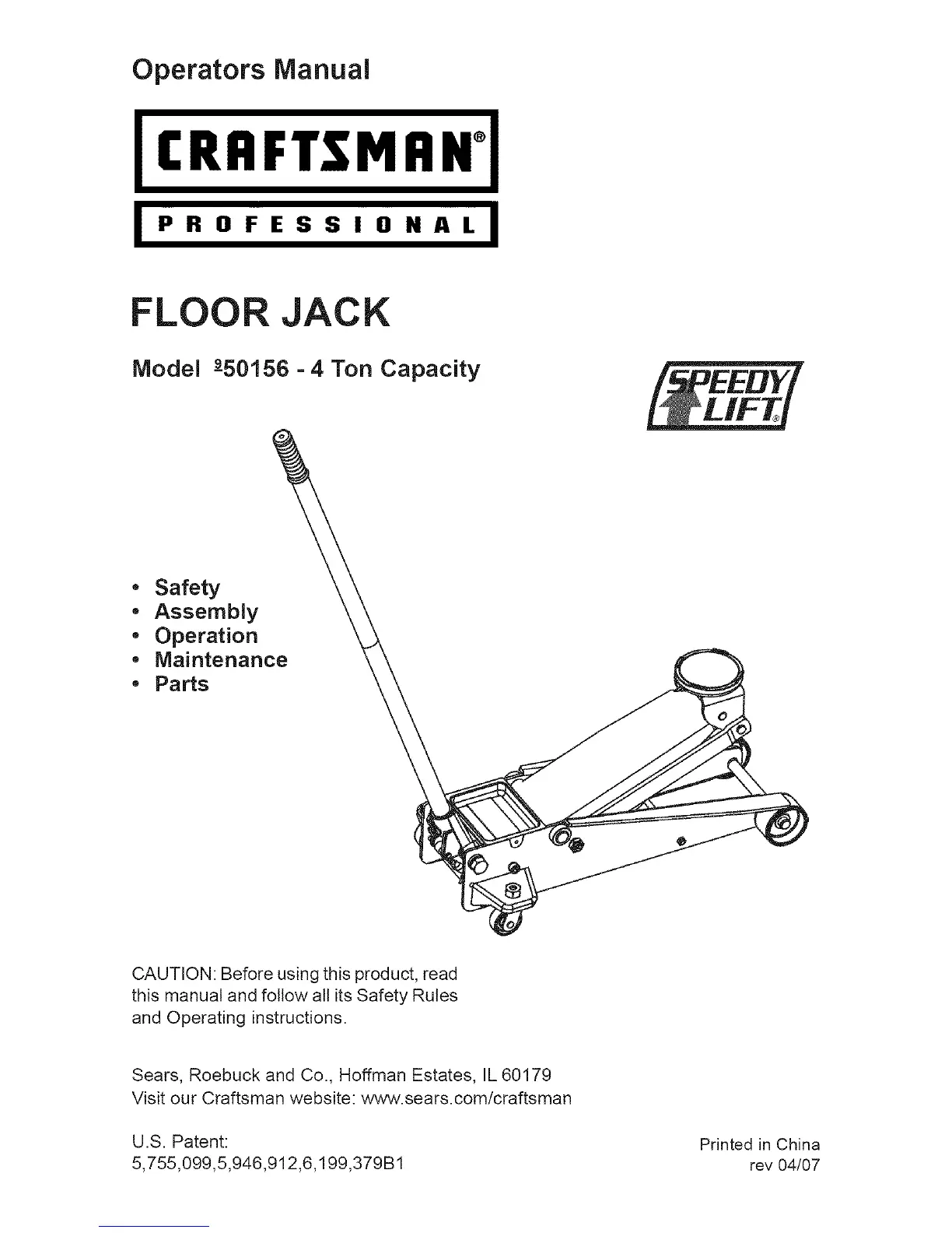 Model 9-50156 =4 Ton Capacity