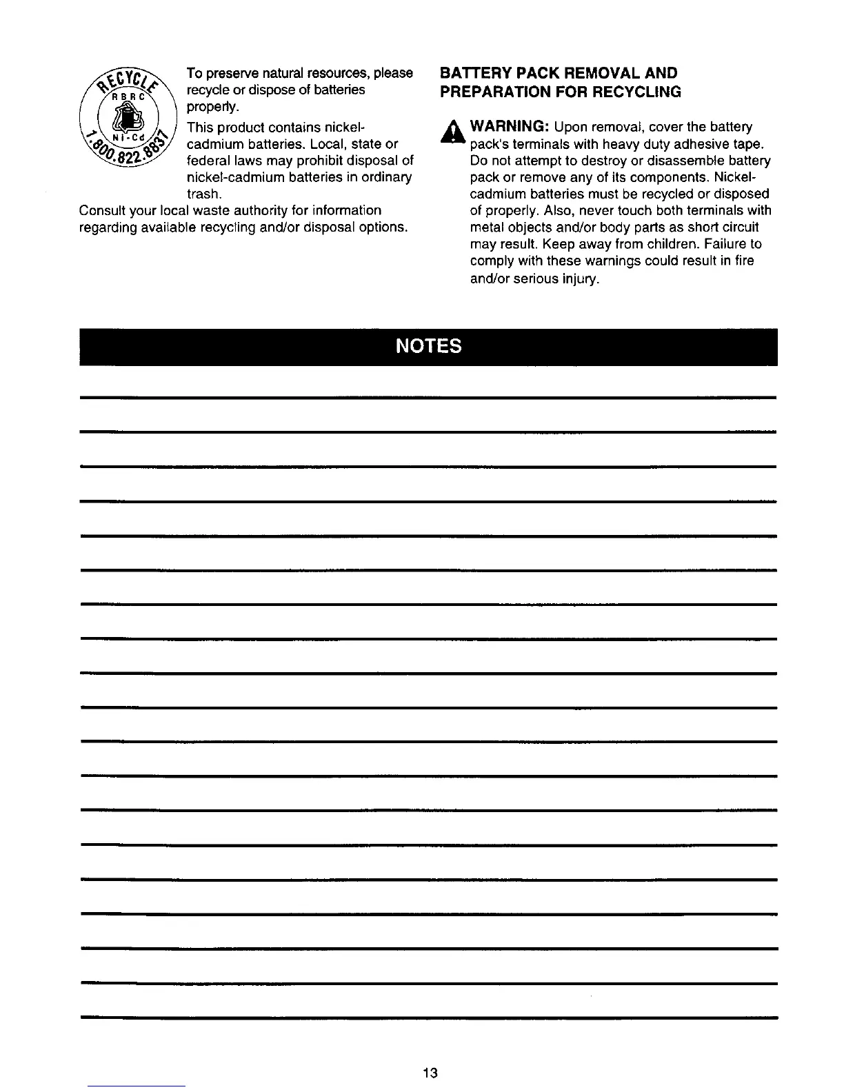 pack or remove any of its components. Nickel-