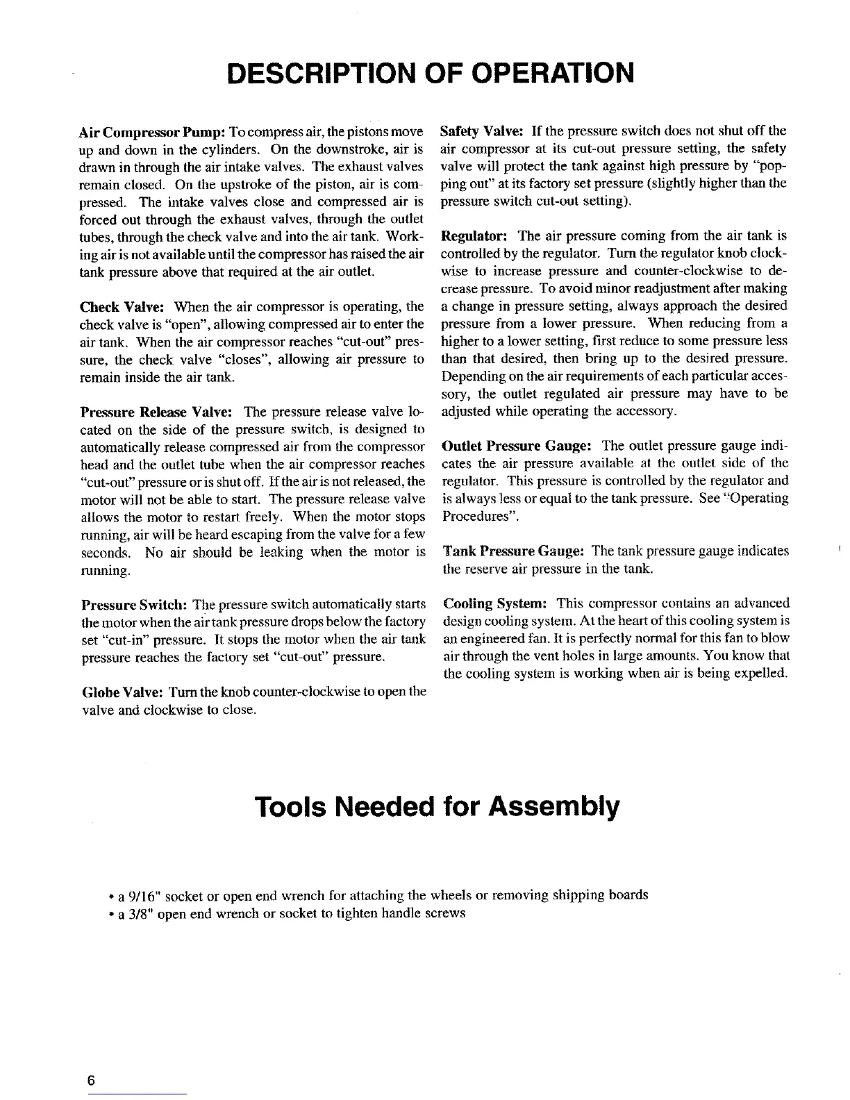 • a 9116" socket or open end wrench for attaching the wheels or removing shipping boards