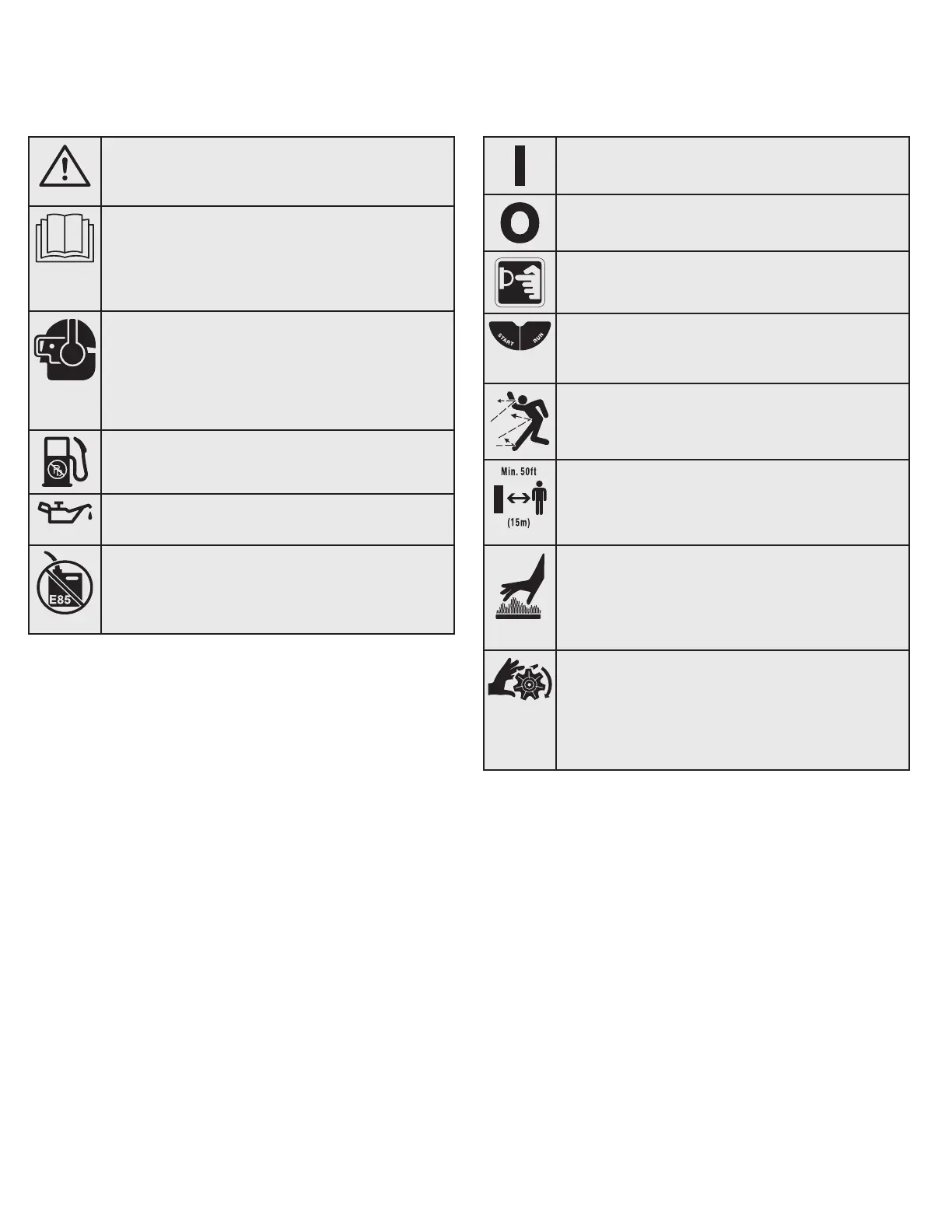 • DO NOT USE E85 FUEL IN THIS UNIT