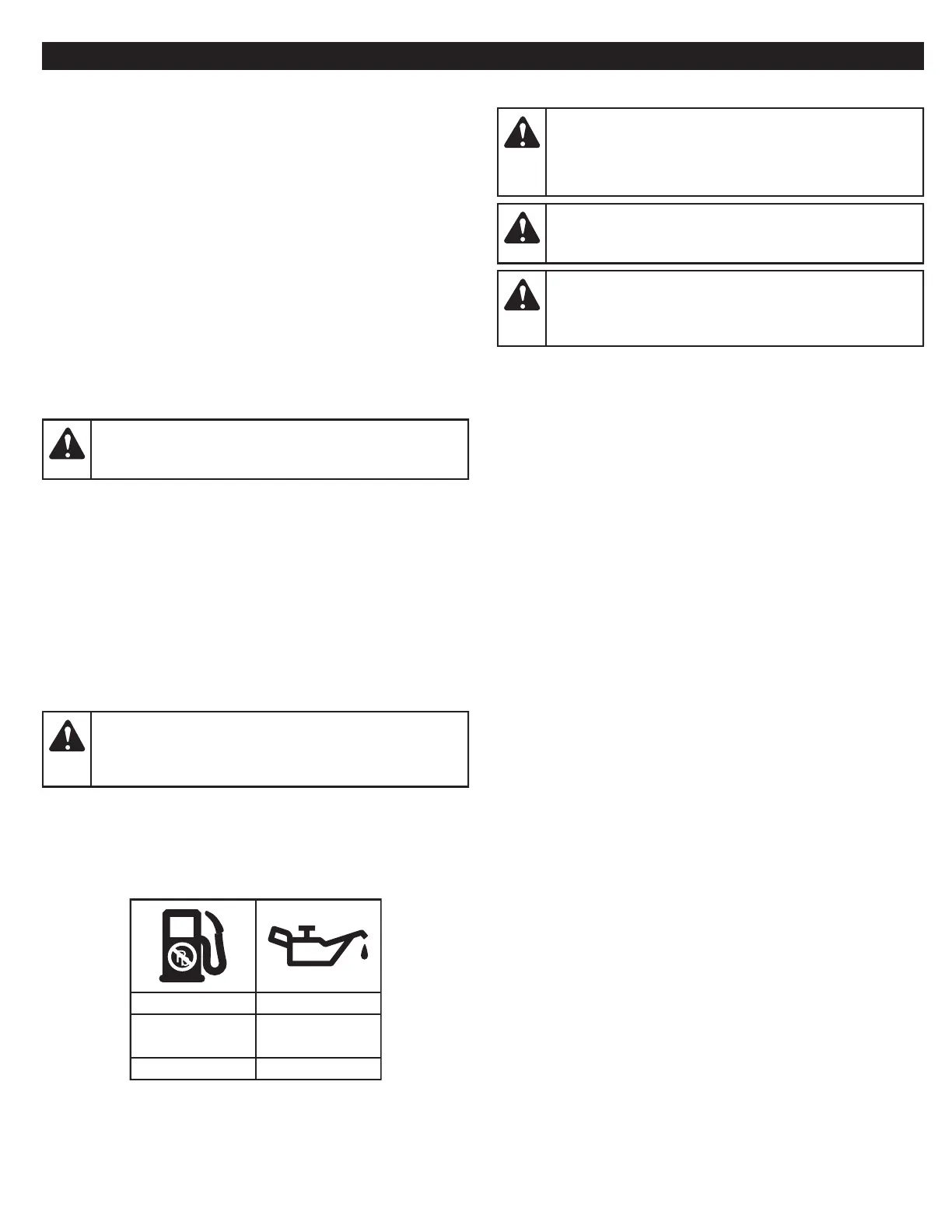 separate fuel can. Use a 40:1 gasoline/oil ratio. See the table below