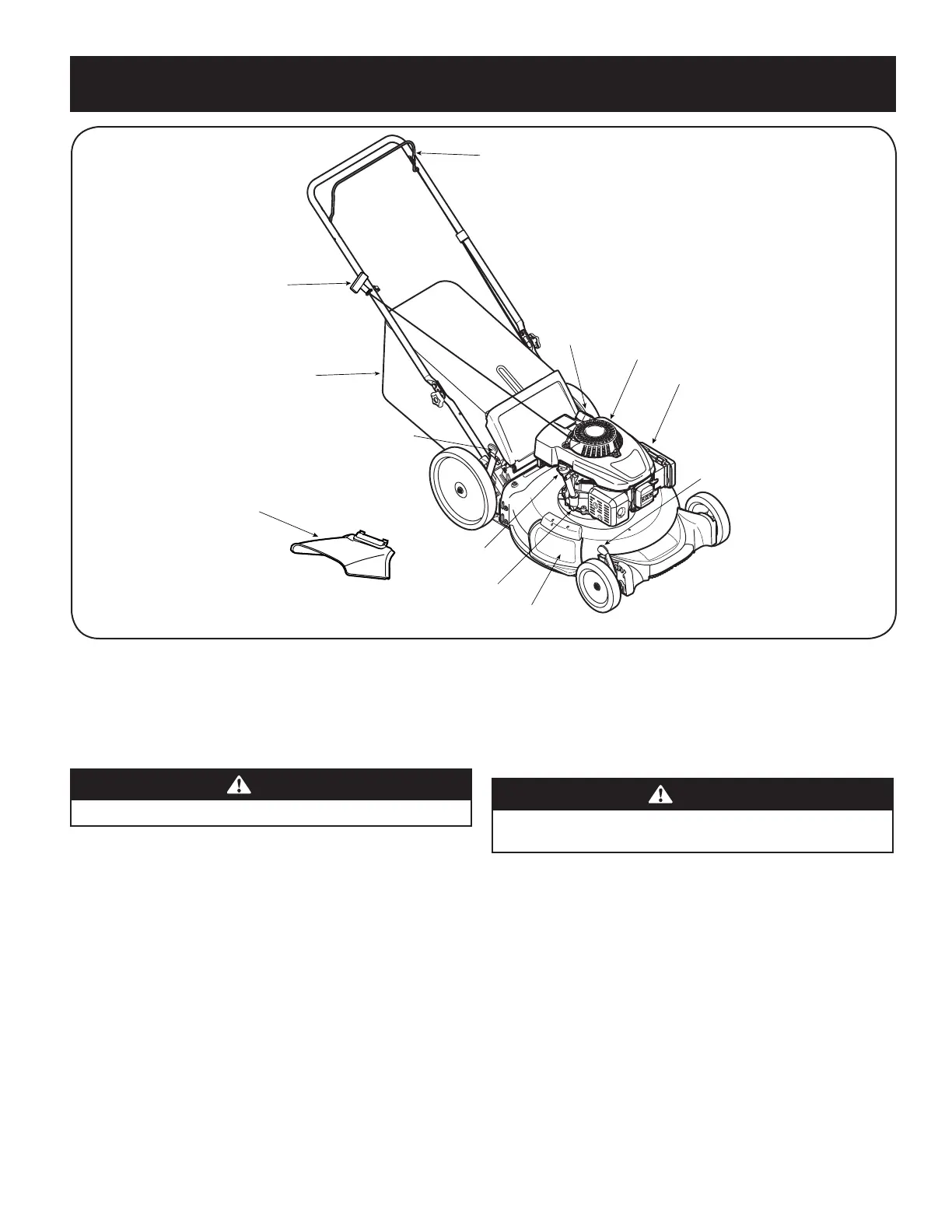 Keep hands and feet away from the chute area on cutting deck. Refer to
