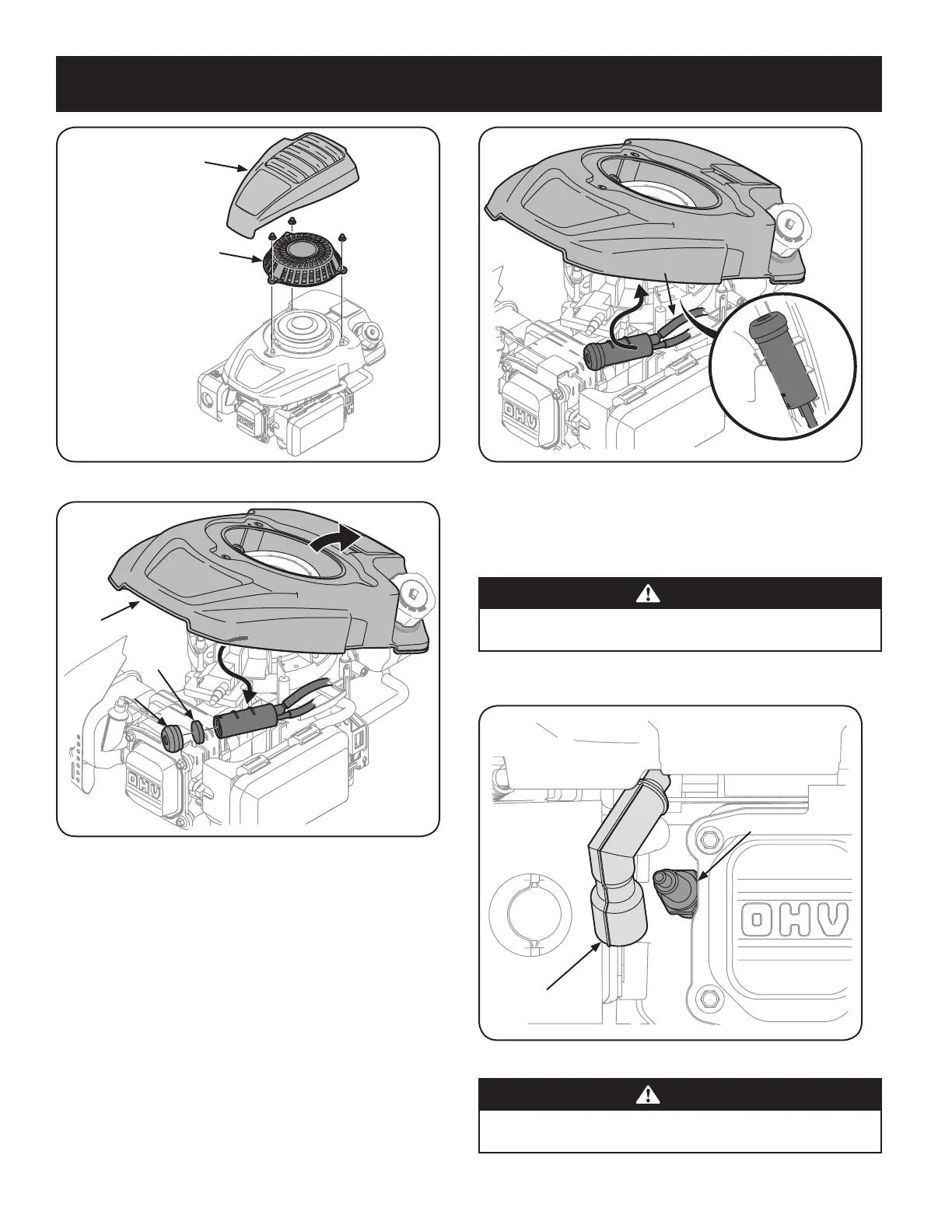 DO NOT check for spark with spark plug removed. DO NOT crank engine