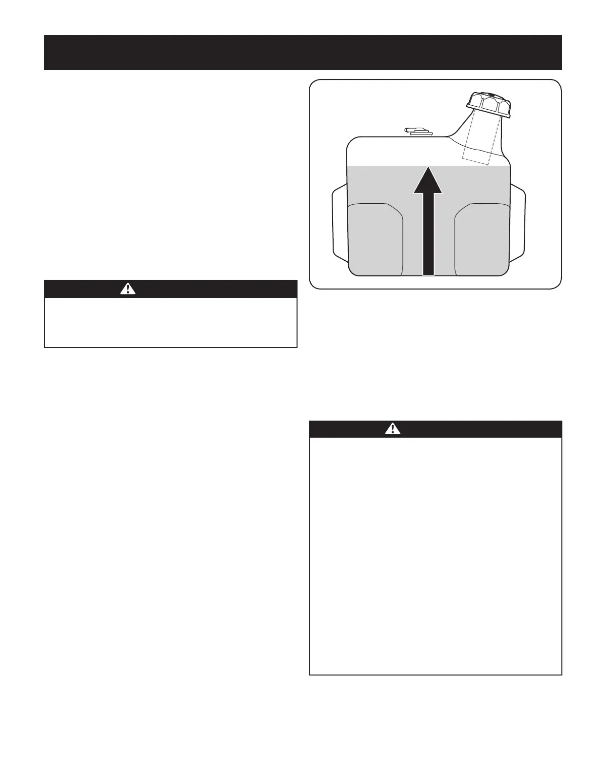 • Do not overfill fuel tank. Fill tank to no more than 1/2 inch below