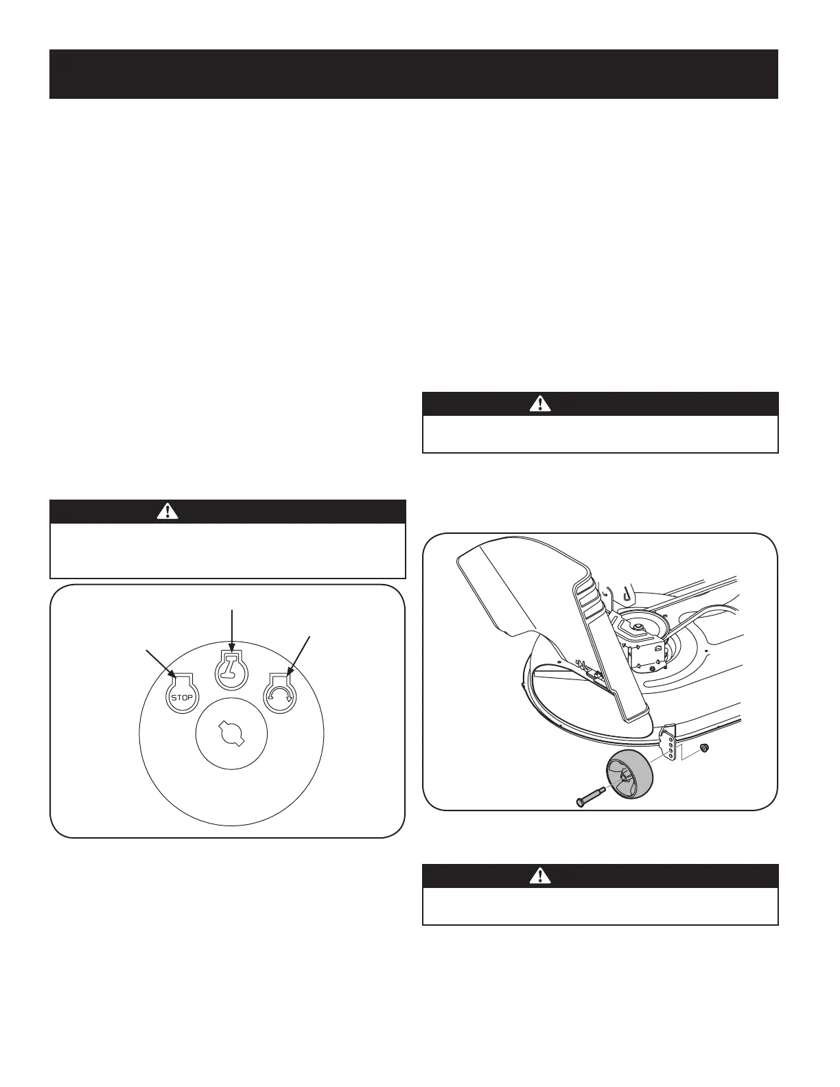 • The engine will automatically shut off if the PTO (Blade Engage)