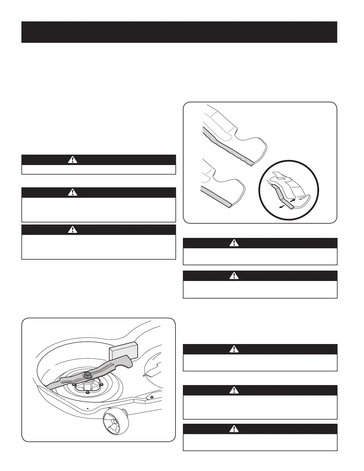 Periodically inspect the blade and/or spindle for cracks or damage,