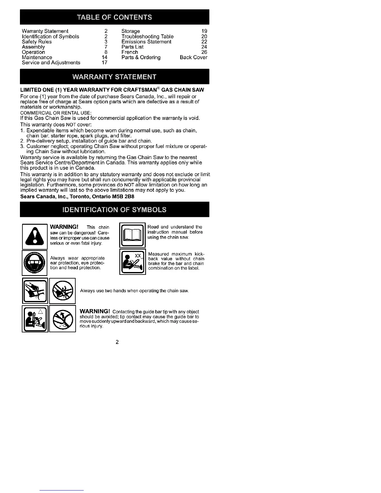 LIMITED ONE (1) YEAR WARRANTY FOR CRAFTSMAN _ GAS CHAIN SAW