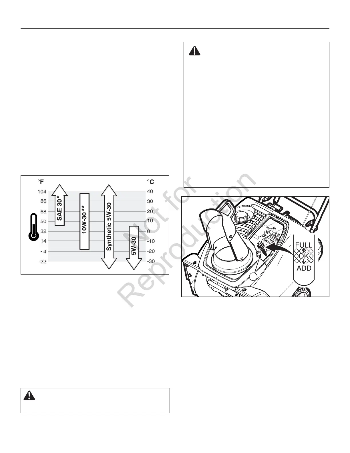 ** Above 80°F (27°C) the use of 10W-30 may cause increased oil consumption. Check