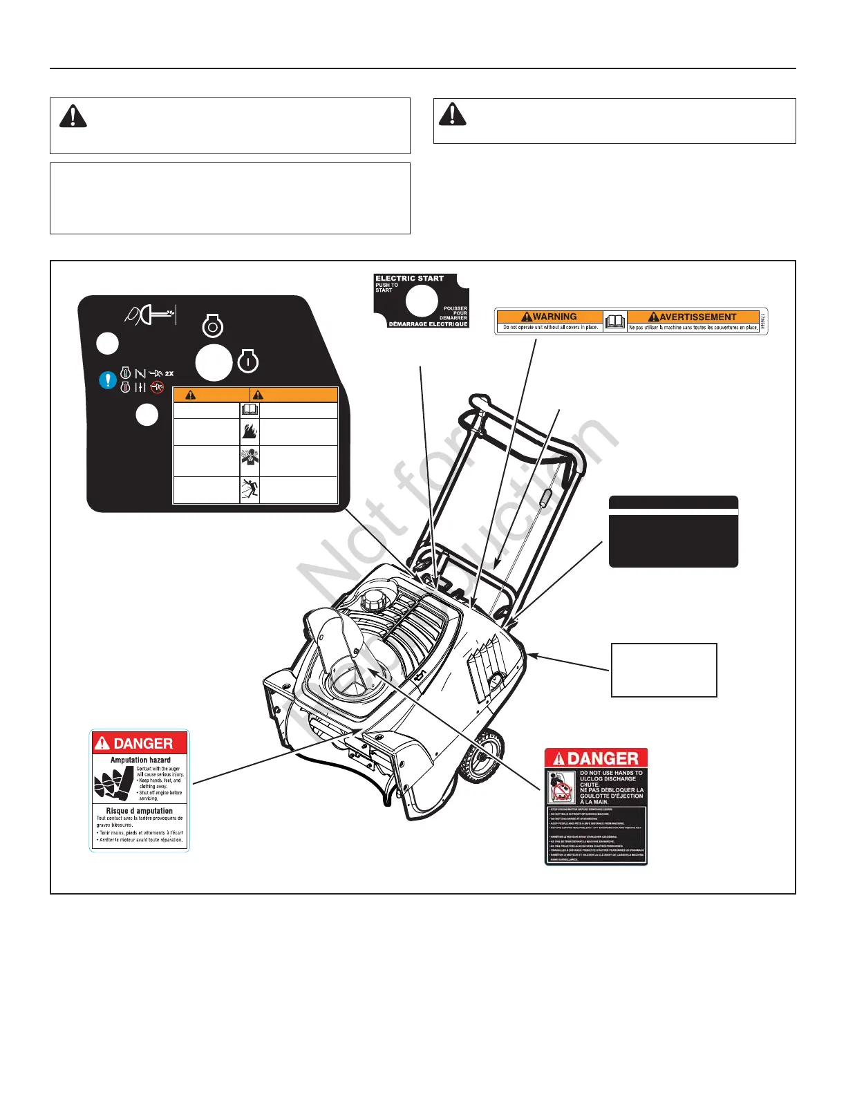 as shown on your snow thrower. The cautions and warnings