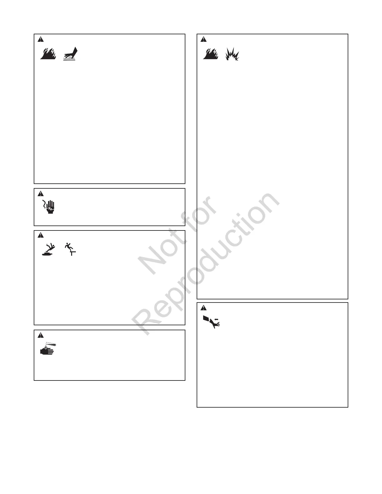 • Keep fuel away from sparks, open flames, pilot lights, heat, and