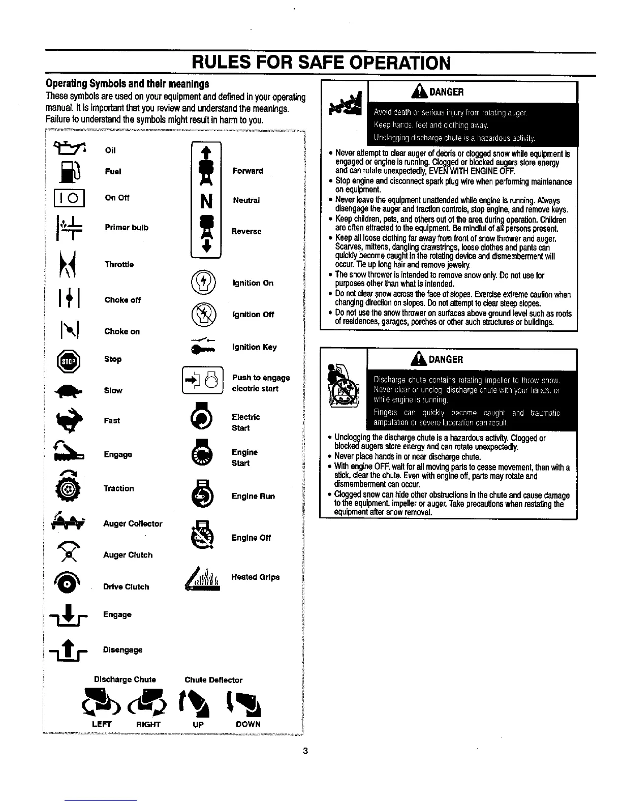 • Keepalllooseclothingfarawayfromfrontofsnowthrowerendauger.