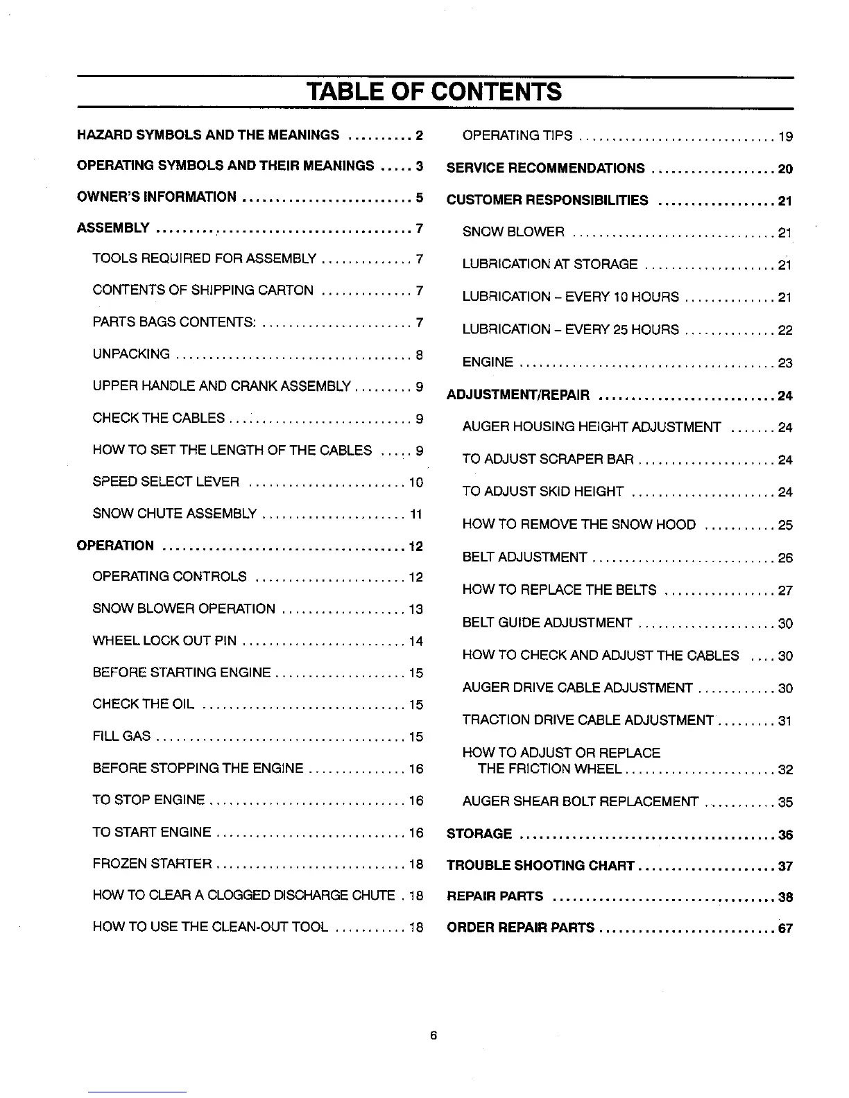 ORDER REPAIR PARTS ........................... 67