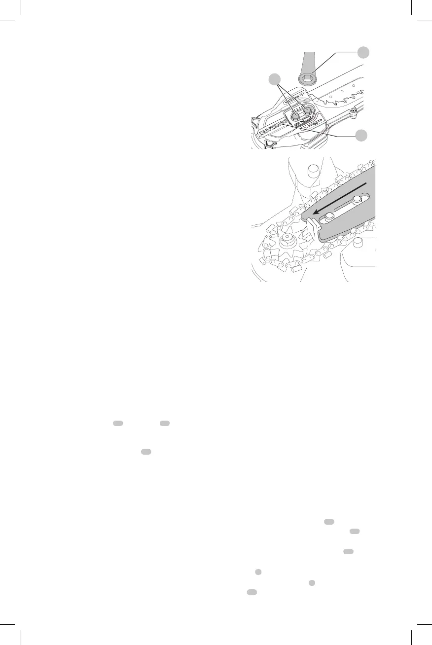 Para tensionar la cadena, afloje los dos pernos de retención