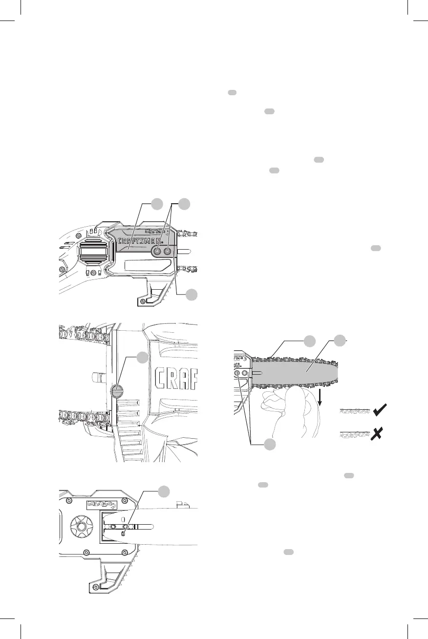6. Cuando la cadena de sierra es nueva, verifique la tensión