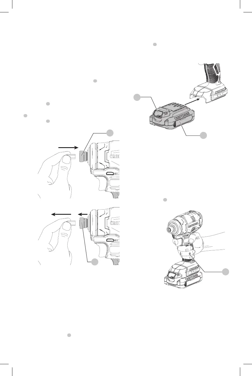 Pour retirer le bloc-piles de l’outil, poussez sur le bouton
