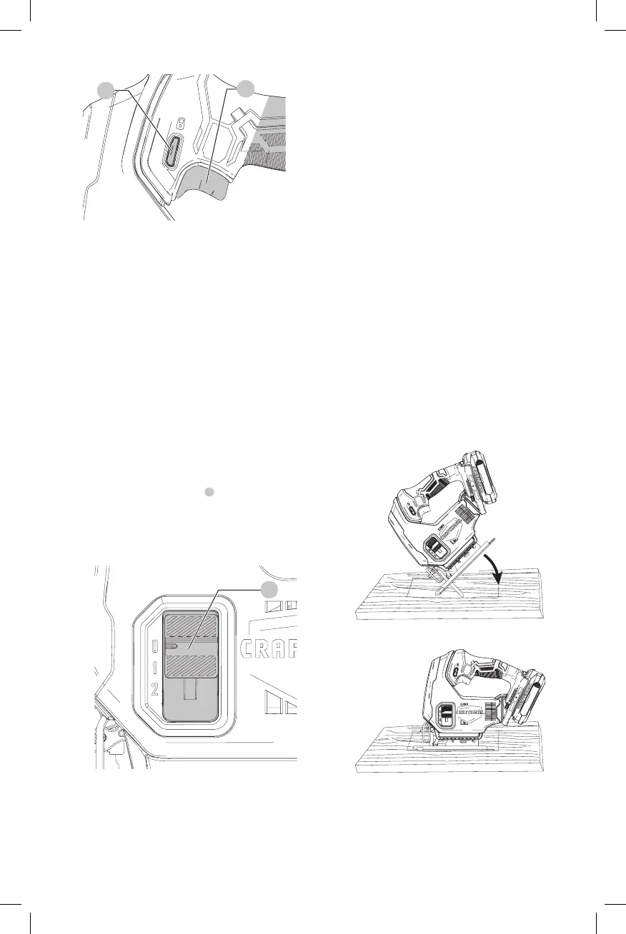 the work through its full stroke. Switch the tool on and