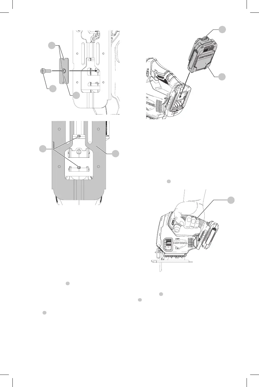 alignez le bloc-piles sur les rails dans la poignée de l’outil et