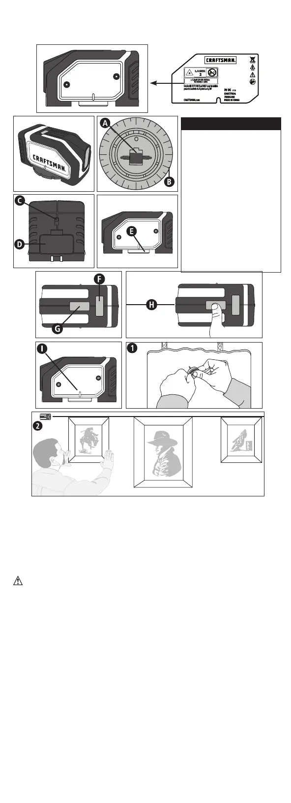 Move on/off switch (C) actuator to the “On” position to project the laser line.