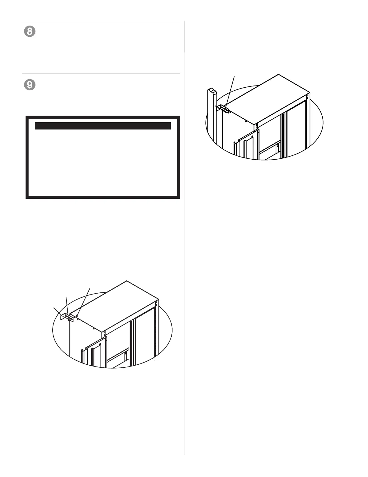 • Align cabinet with a stud. Adjust leveler feet if needed.