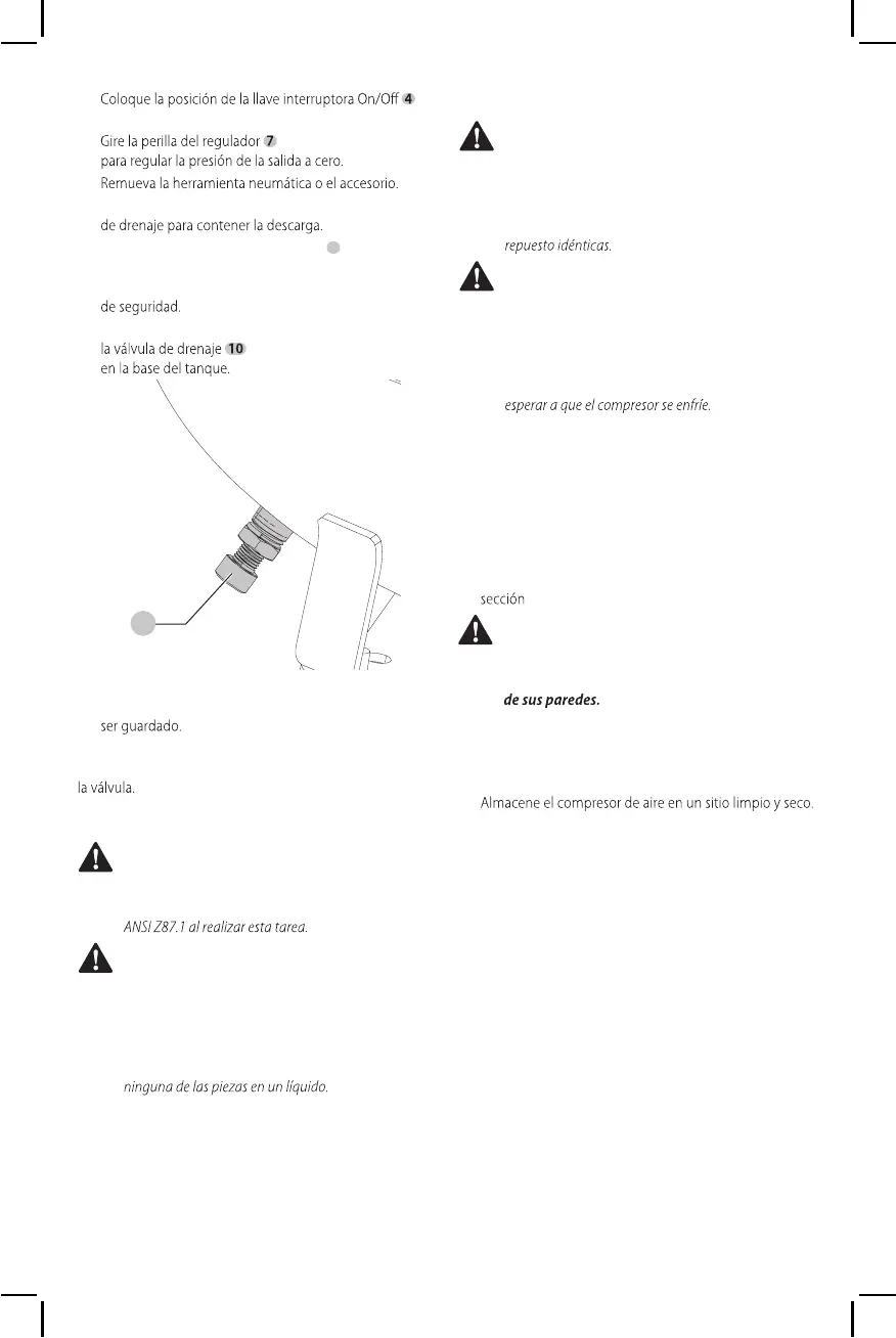 6. Drene el agua contenida en el tanque de aire, abriendo