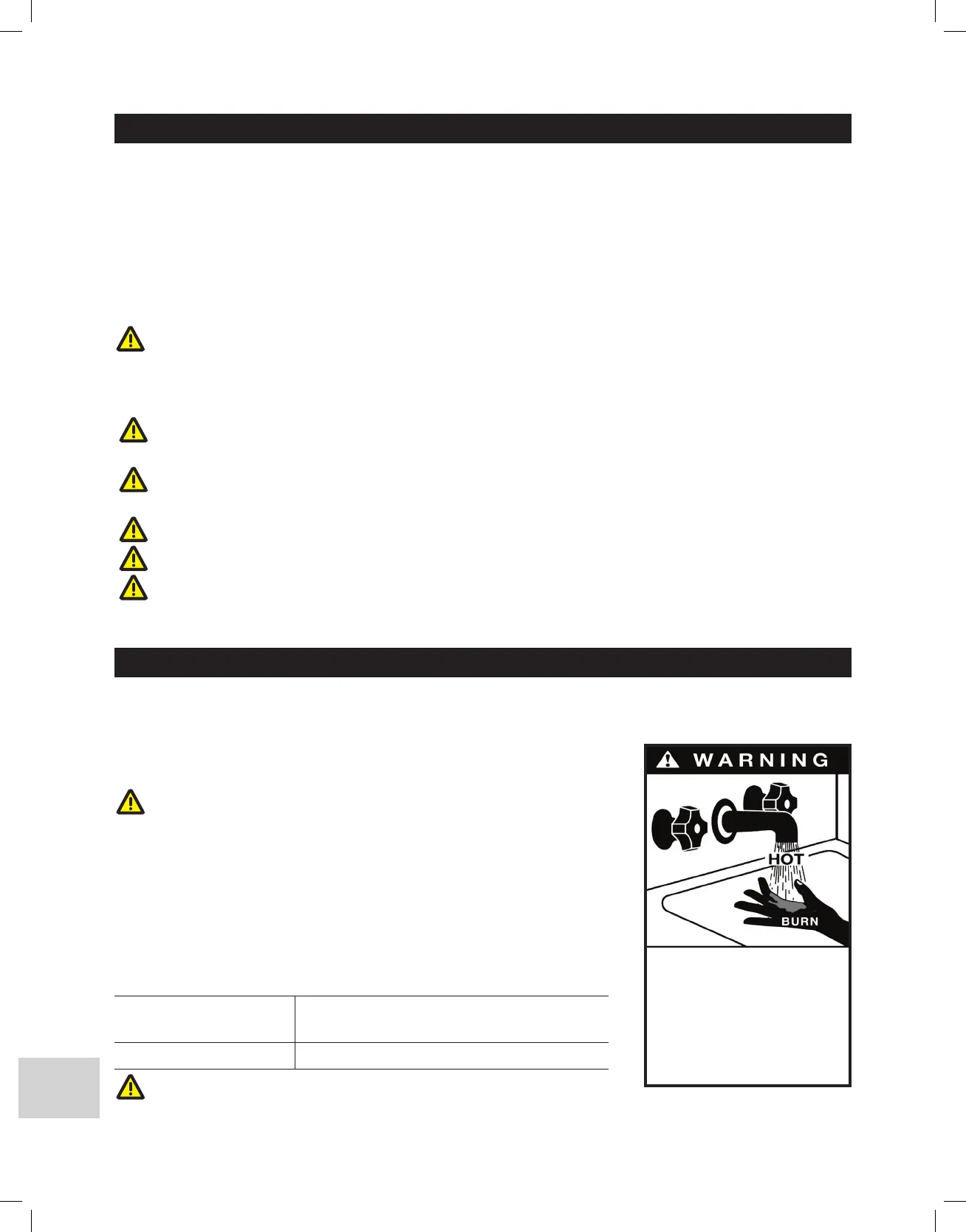 ADVERTENCIA: Es posible que necesite un ajuste de 120°F (49°C) o menos del termostato para evitar el contacto con agua