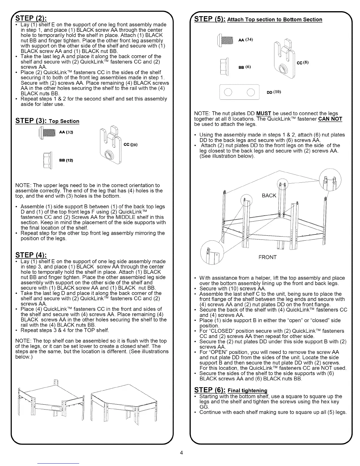 • Secure the back of the shelf with (4) QuickLink TM fasteners CC