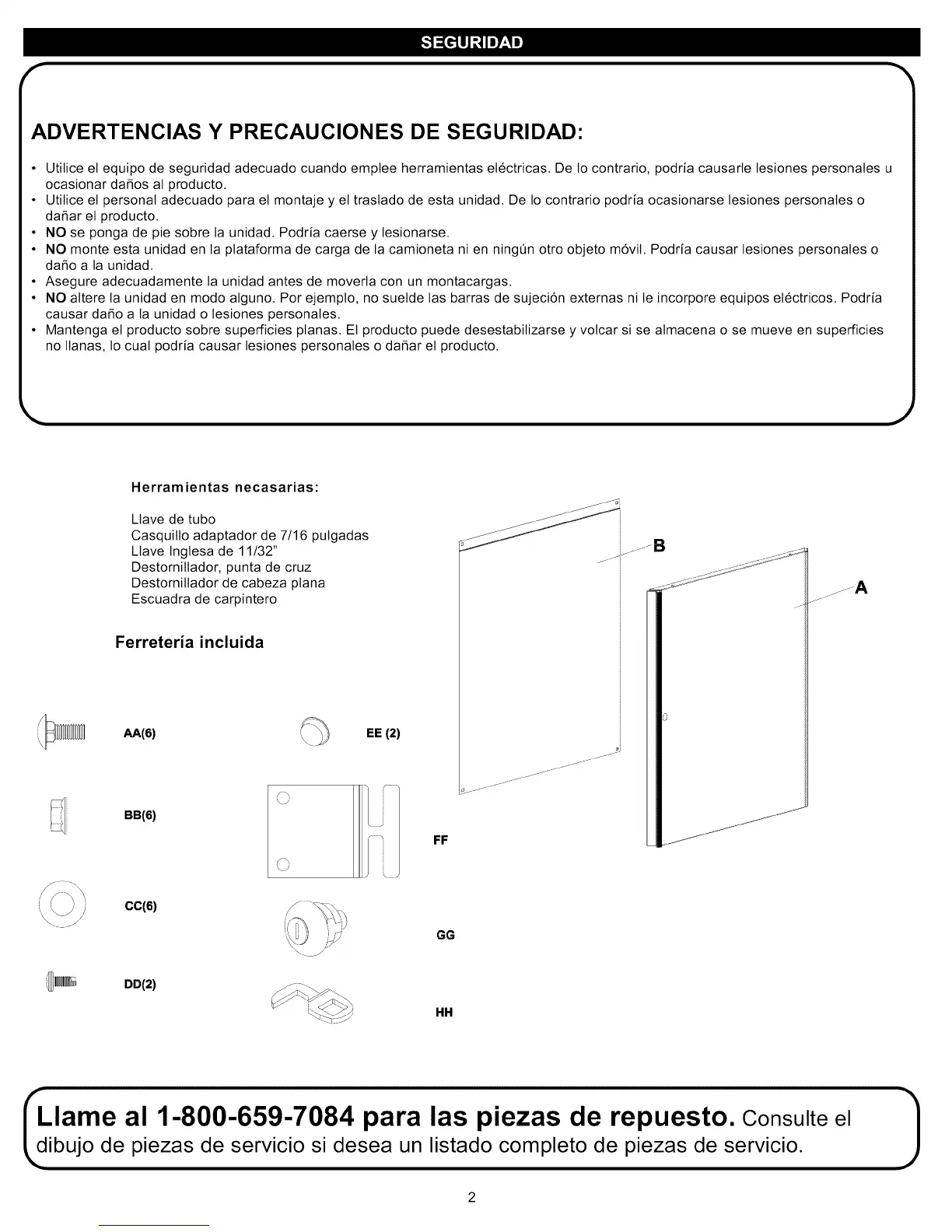 • NO monte esta unidad en la ptataforma de carga de la camioneta ni en ning6n otro objeto m6vil. Podria causar lesiones personales o |