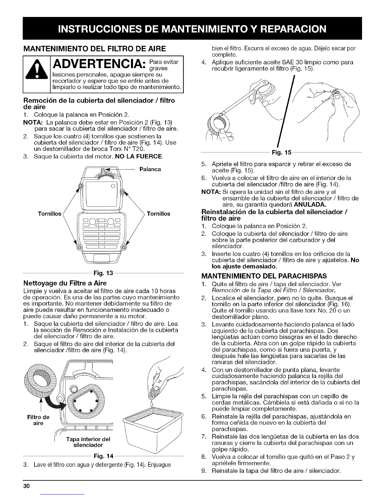cubierta del silenciador / filtro de aire (Fig. 14). Use