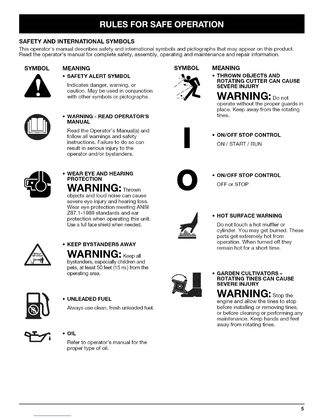 This operator's manual describes safety and international symbols and pictographs that may appear on this product.