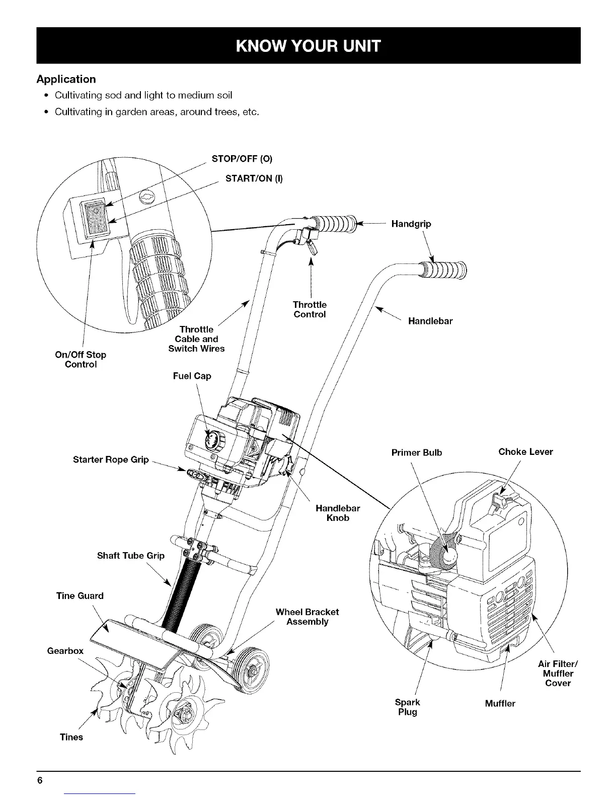 Cultivating sod and light to medium soil