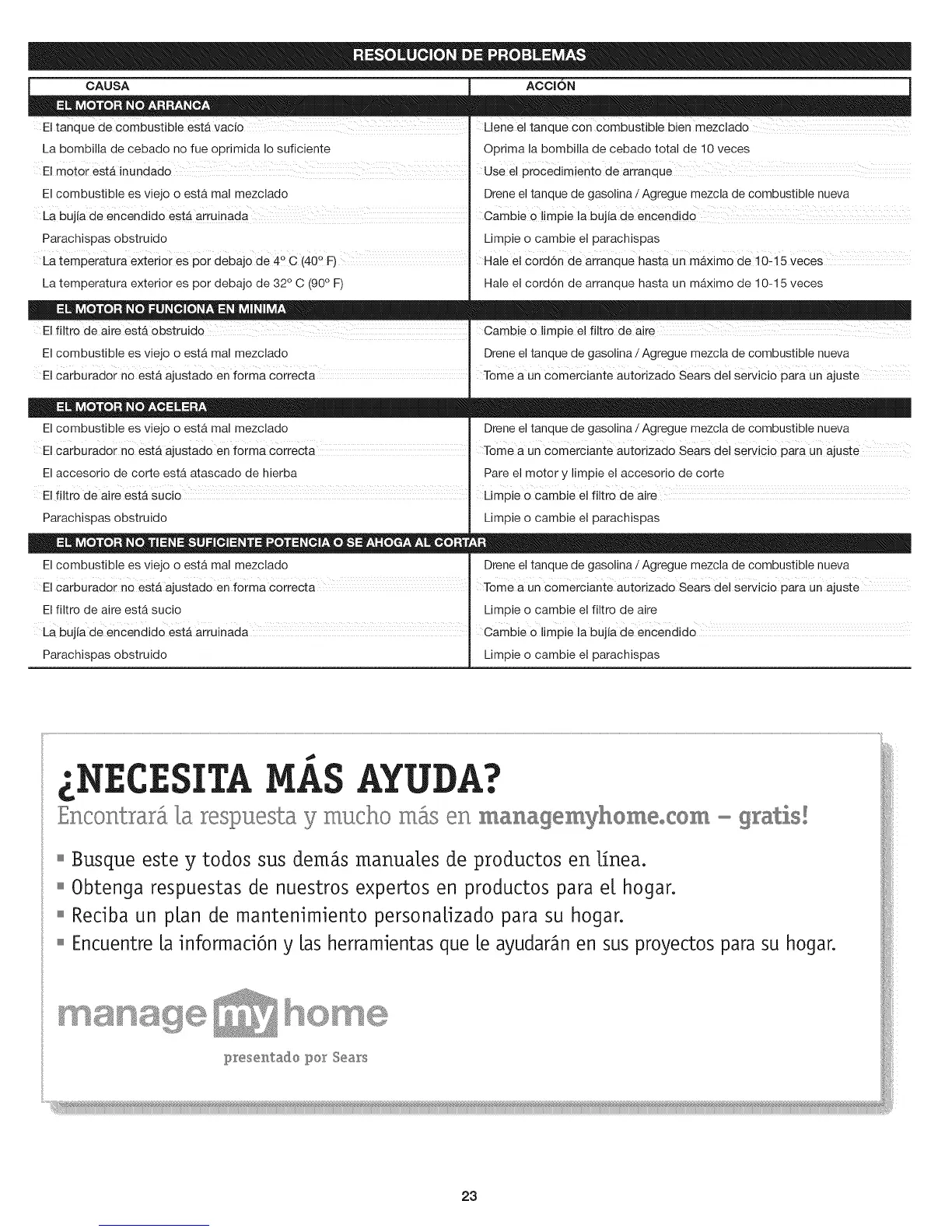 E carburador no esta ajustado en forma correcta Tome a un comerc ante autor zado Sears de serv c o para un ajuste