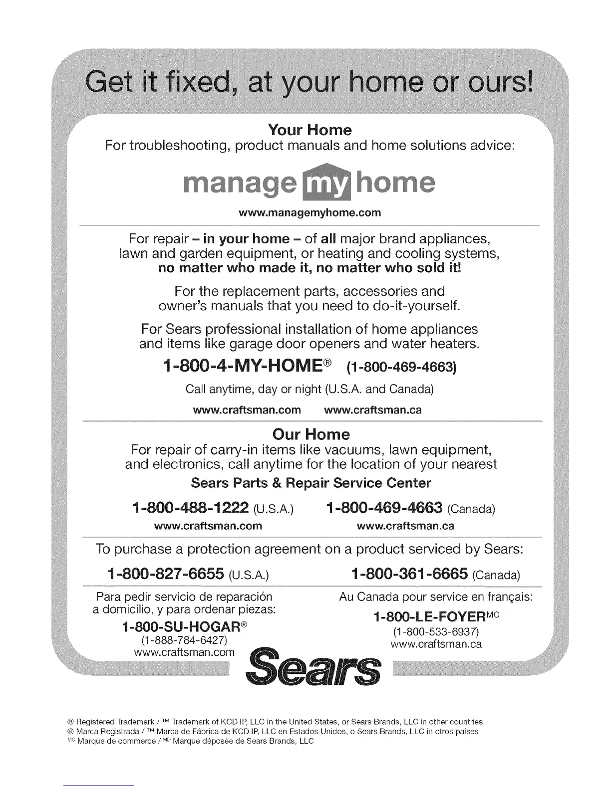 ® Registered Trademark / Trademark of KCD IP, LLC in the United States, or Sears Brands, LLC in other countries
