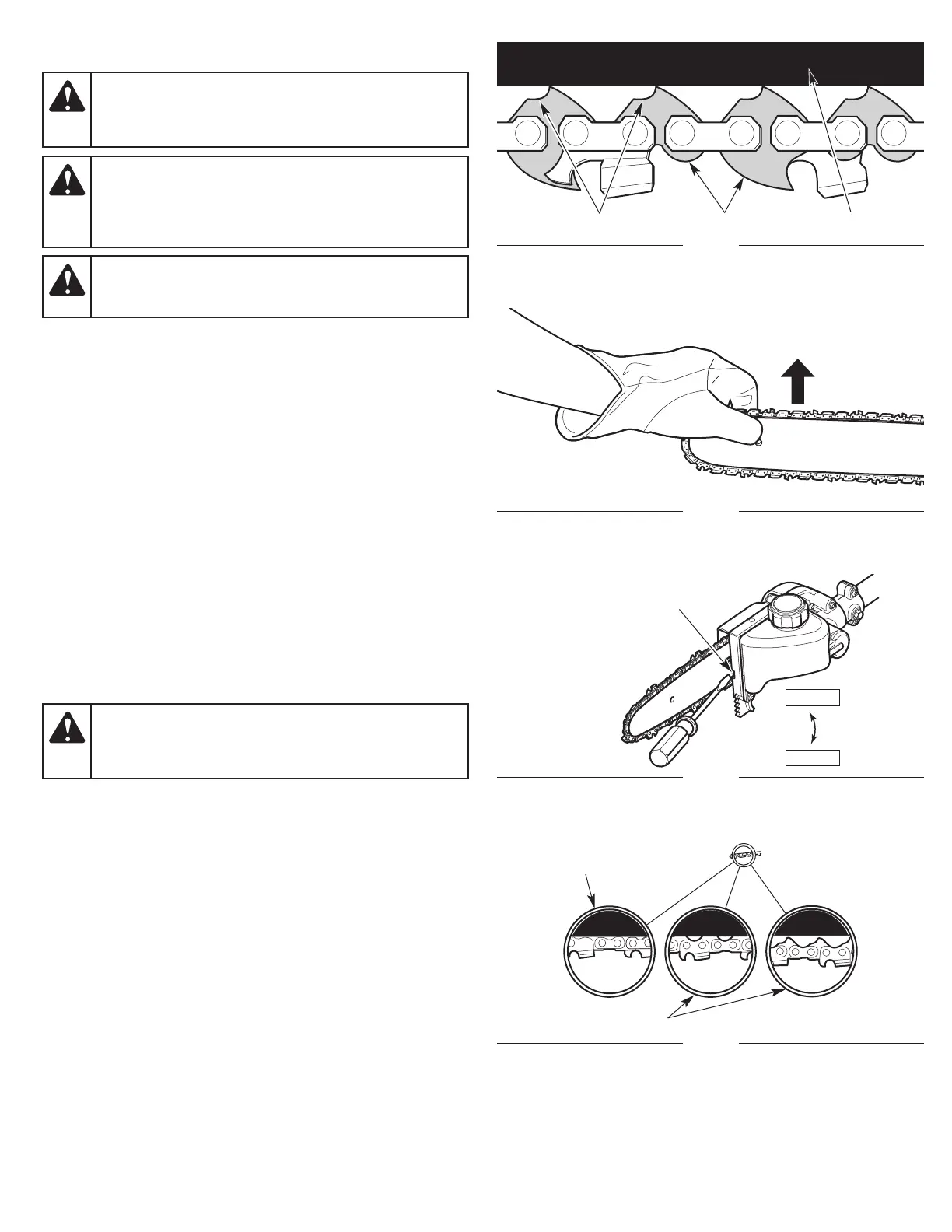 whenever the flats on the saw chain hang out of the bar groove (Fig. 13