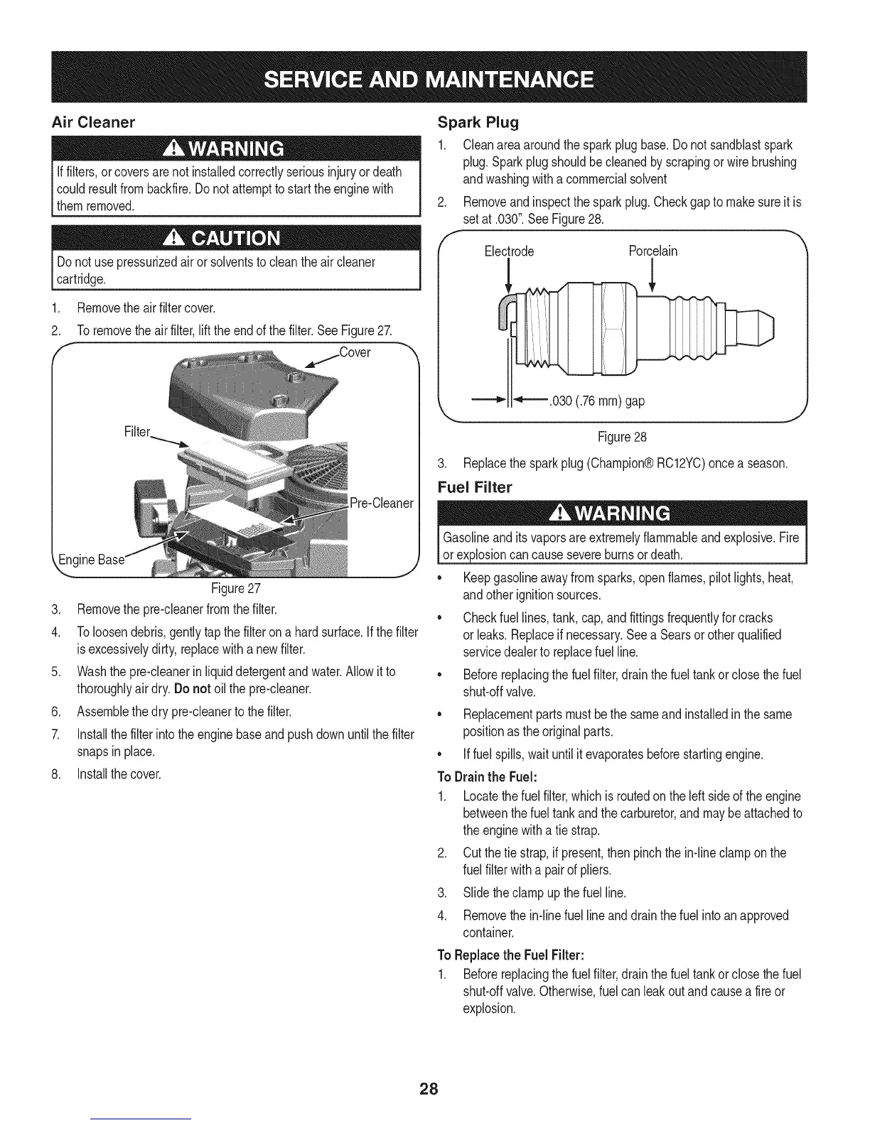 3. Replacethe sparkplug(Champion®RC12YC)oncea season.