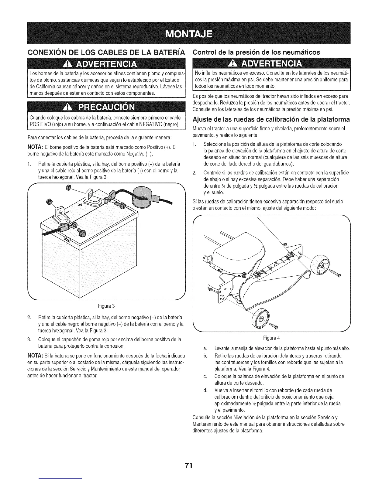 Ajuste de las ruedas de calibraci6n de la plataforma