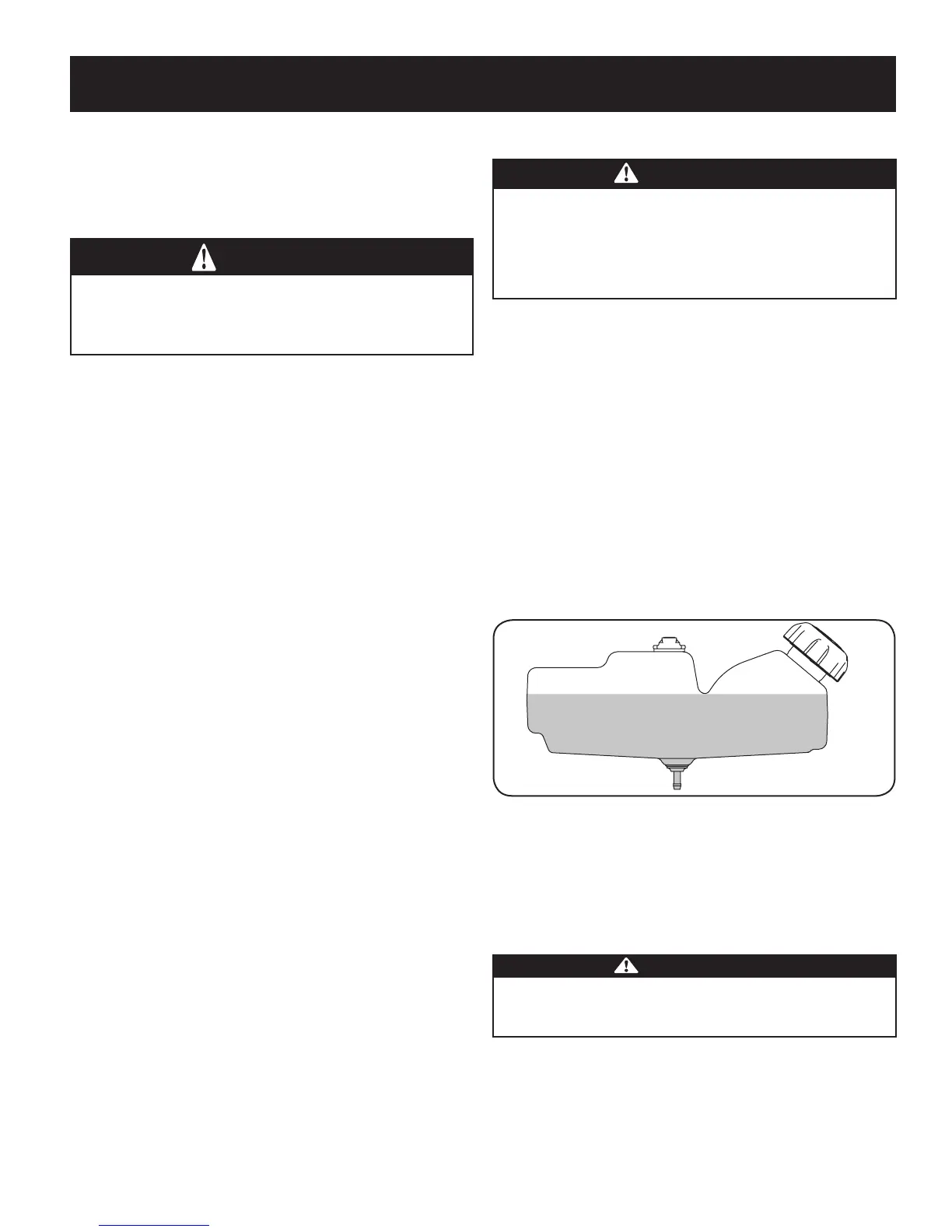 3. Cargue el depósito hasta que el combustible llegue a 1⁄2 pulgada por debajo