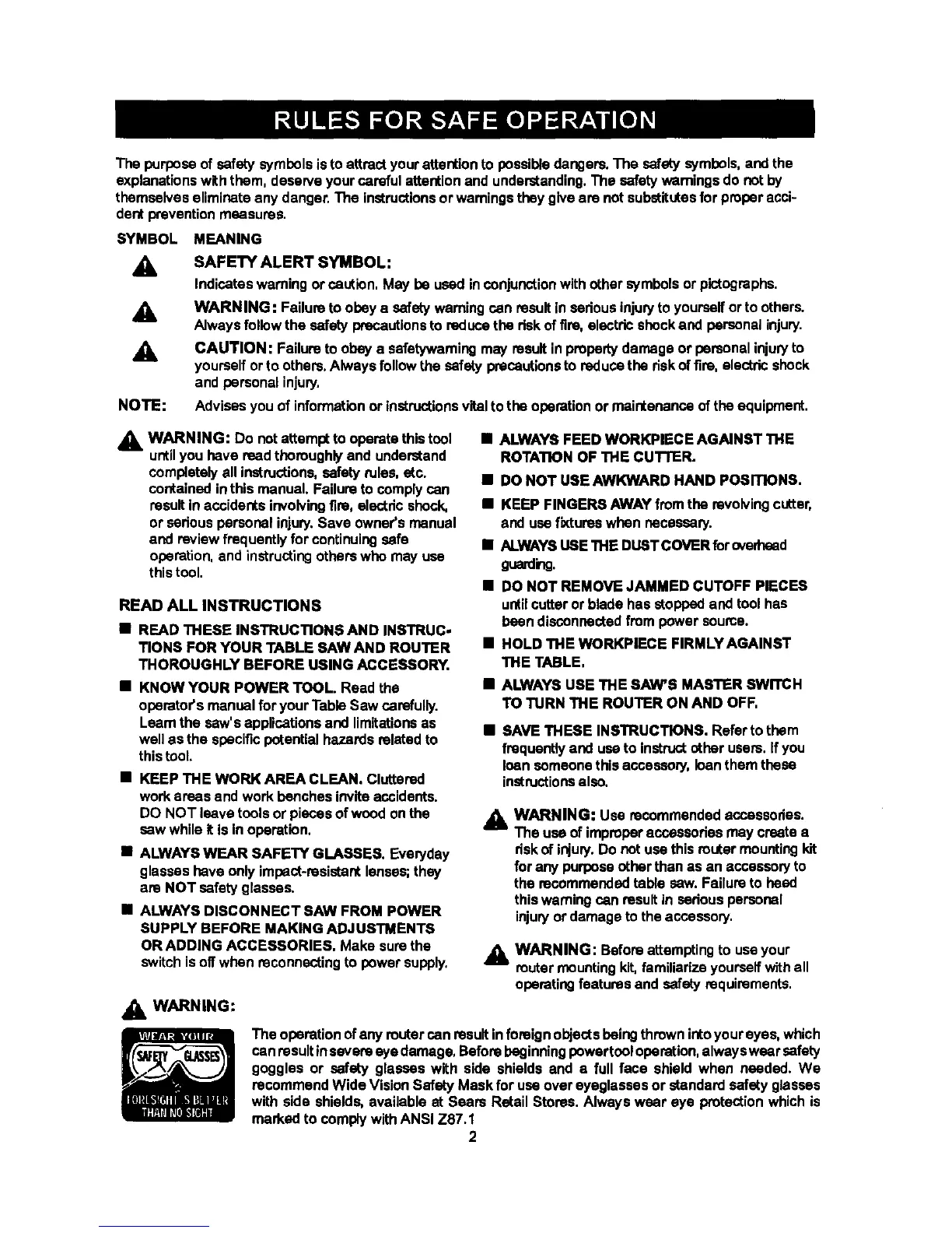 with side shields,available at Sears Retail Stores. Always wear eye protectionwhich is