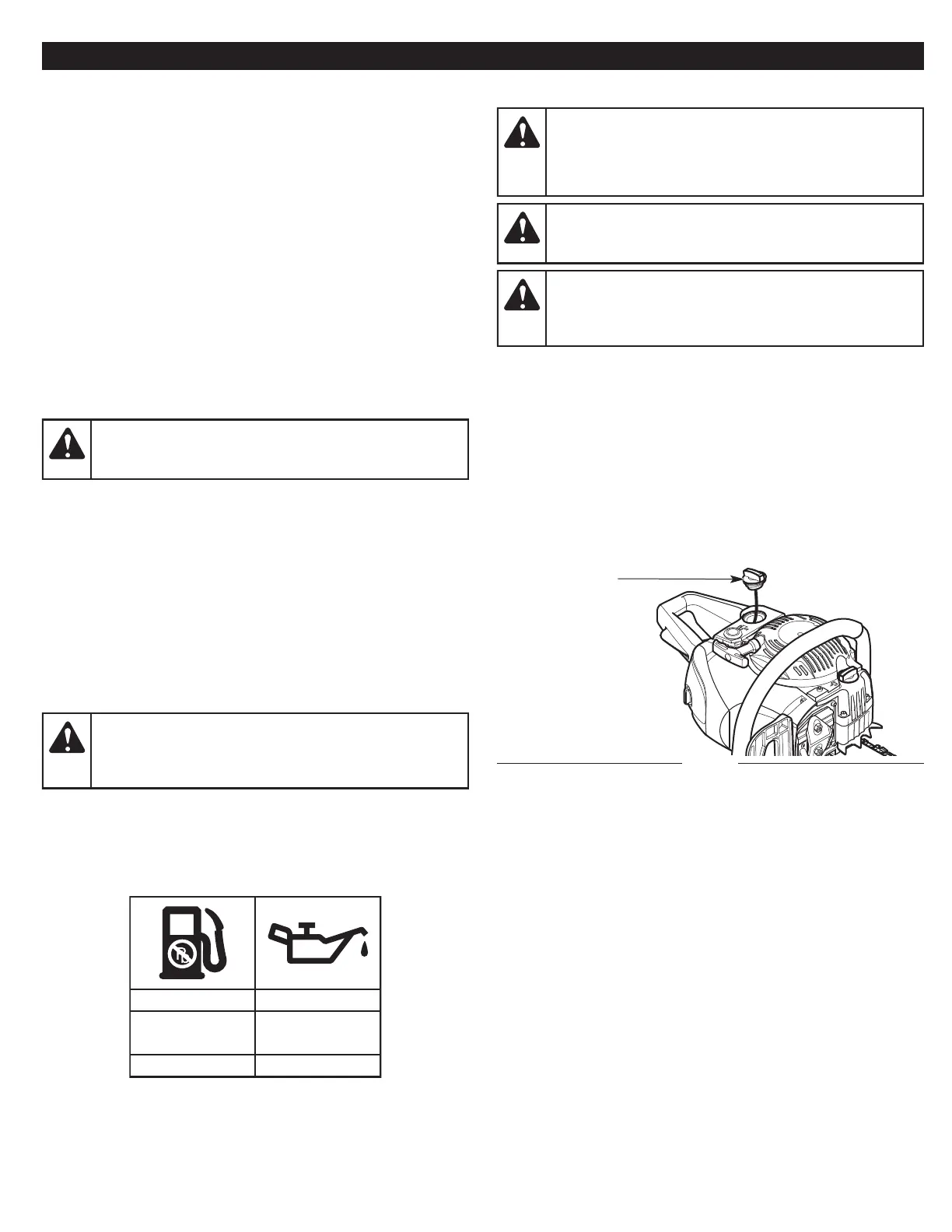 separate fuel can. Use a 50:1 gasoline/oil ratio. See the table below
