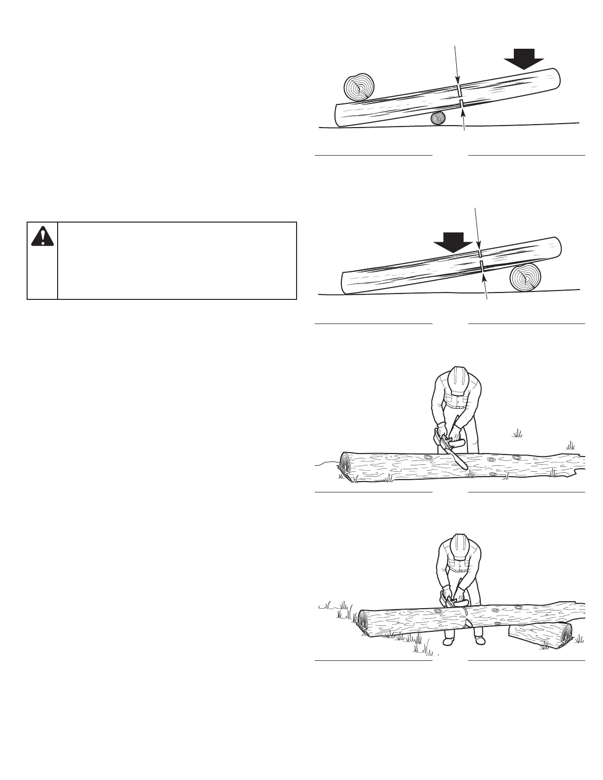 • If the log is supported on two ends (Fig. 18), make the first cut
