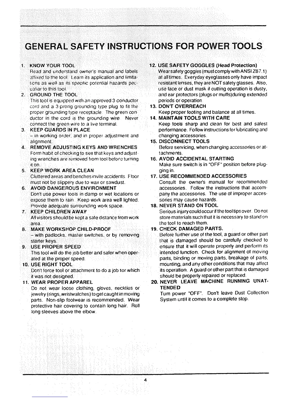 AFETY INSTRUCTIONS :FOR: POWER TOOLS