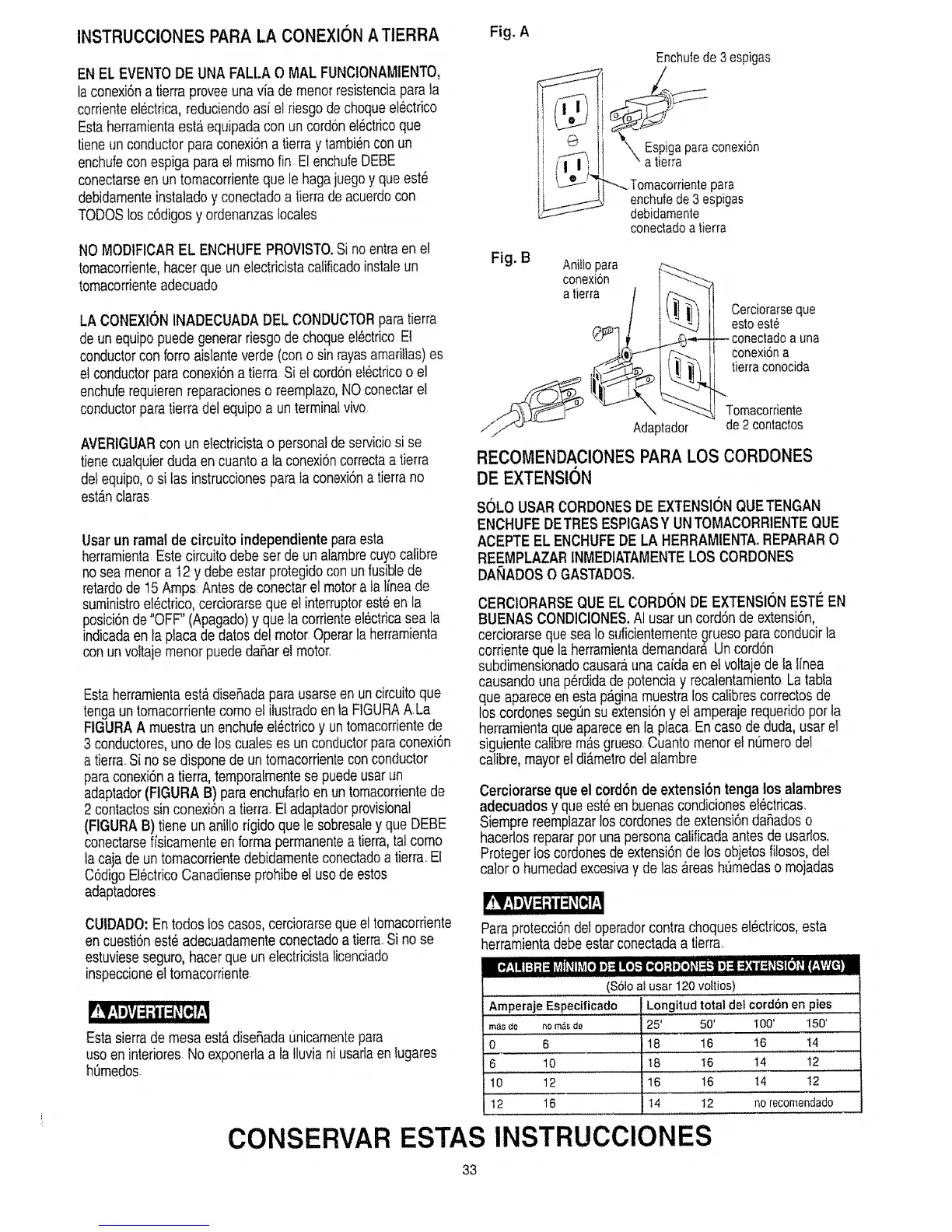 INSTRUCCiONES PARA LA CONEXlON ATtERRA Fig. A