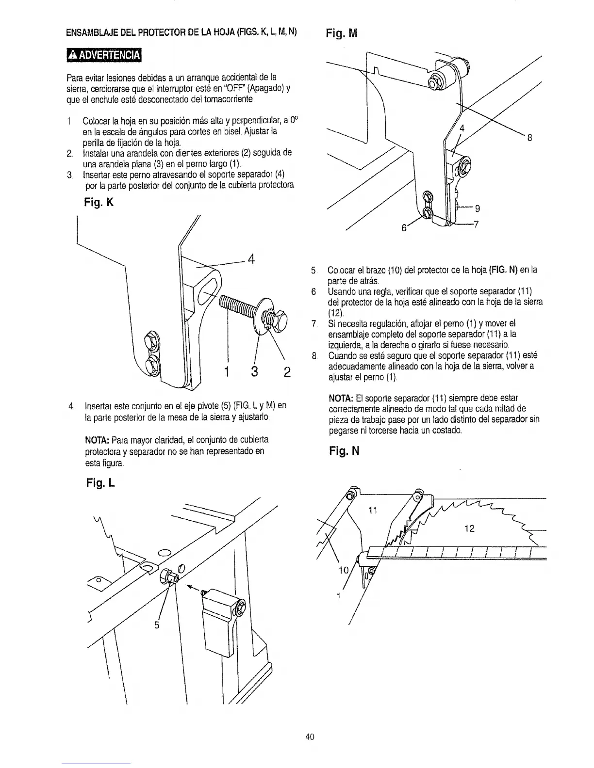 5. Colocar el brazo(10)deI protectorde fa hoja (FIG,N) en la