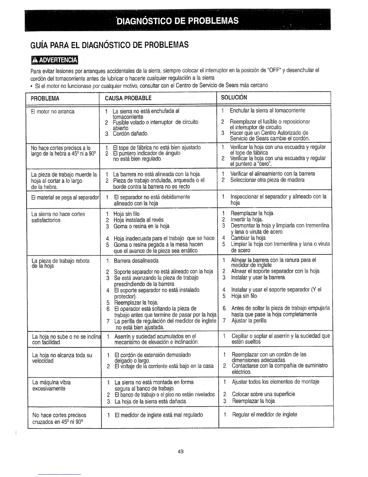 o Si el motor no funcionasepot cualquier rnotivo,consultarcon el Centro de Servicio de Sears mas cercano