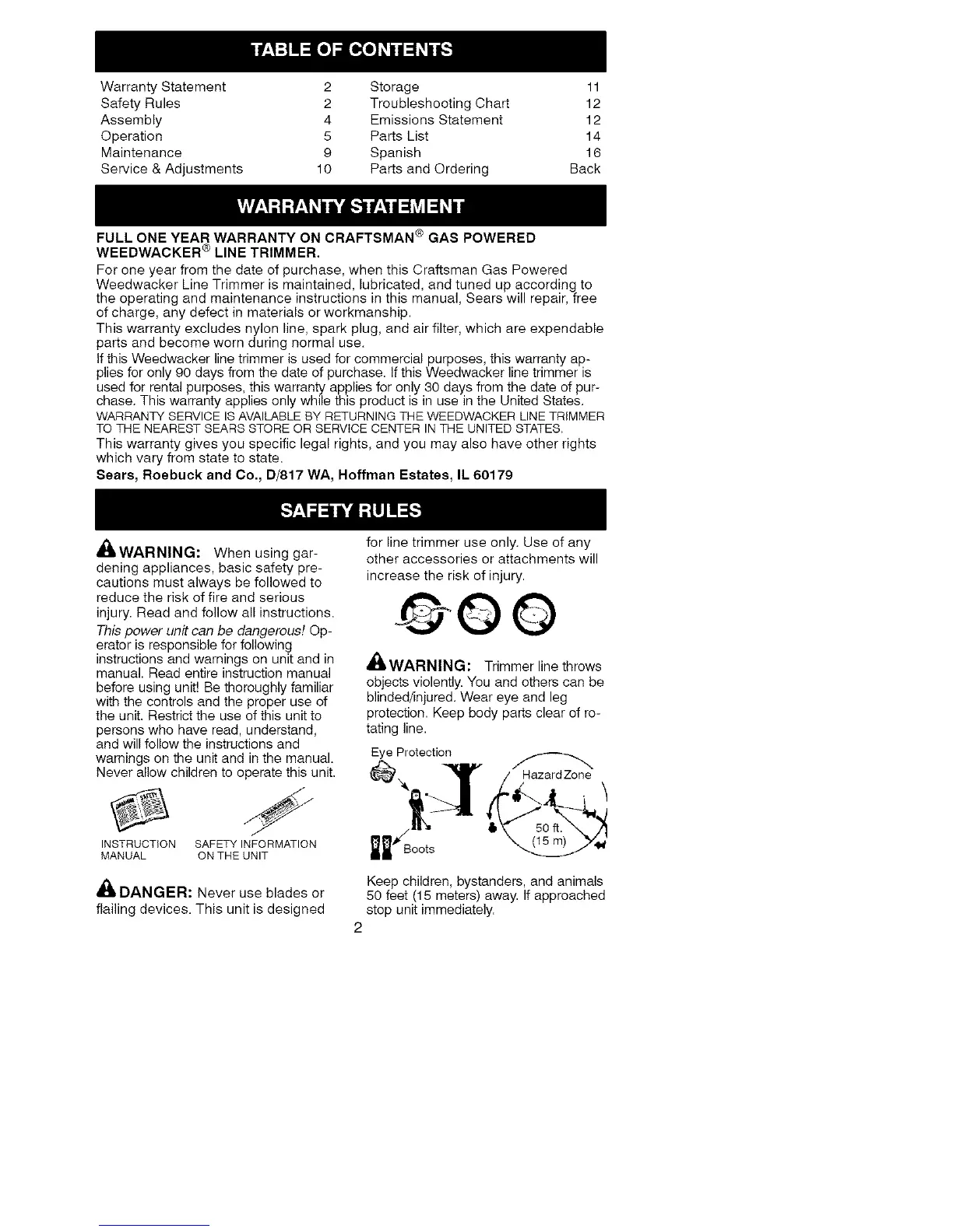 This warranty excludes nylon line, spark plug, and air filter, which are expendable